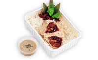 Aszalt gyümölcsökkel töltött csirkemell, jázmin rizs, diós sajtmártás