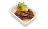 Lenmagba forgatott csirkemell csíkok, burgonyapürével Fol: 76,0 microgramm/adag