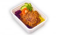 Összetevők: burgonya (31%), sertés tarja (25%), mustár (víz, mustármag, cukor, ételecet, étkezési só, fűszerek (koriander, köménymag, majoránna, őröltbabér), tartósítószer (natrium-benzoát), élelmiszer színezék(kurkumin)) (9%), lilakáposzta (9%), fejeskáposzta (9%), tepertő (szalonna, tej), lilahagyma, étkezési só, napraforgóolaj, vöröshagyma, cukor, vörösbor, sertészsír, ecet (erjesztett ecet, etanol), grill fűszerkeverék (jódozott só, paprika, kömény, fokhagyma, cayenne bors), fűszerek